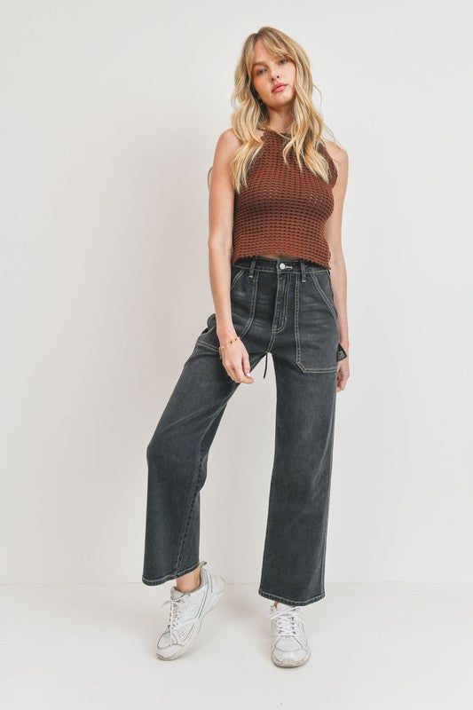 SUPER HIGH RISE CARPENTER JEANS WITH UTILITY POCKET AND SIDE LOOP IN WASHED BLACK DENIM